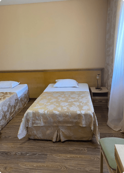 Располагает уютными категориями номеров, на выбор для каждого гостя, от односпального стандарта, до премиального люкса с диваном.